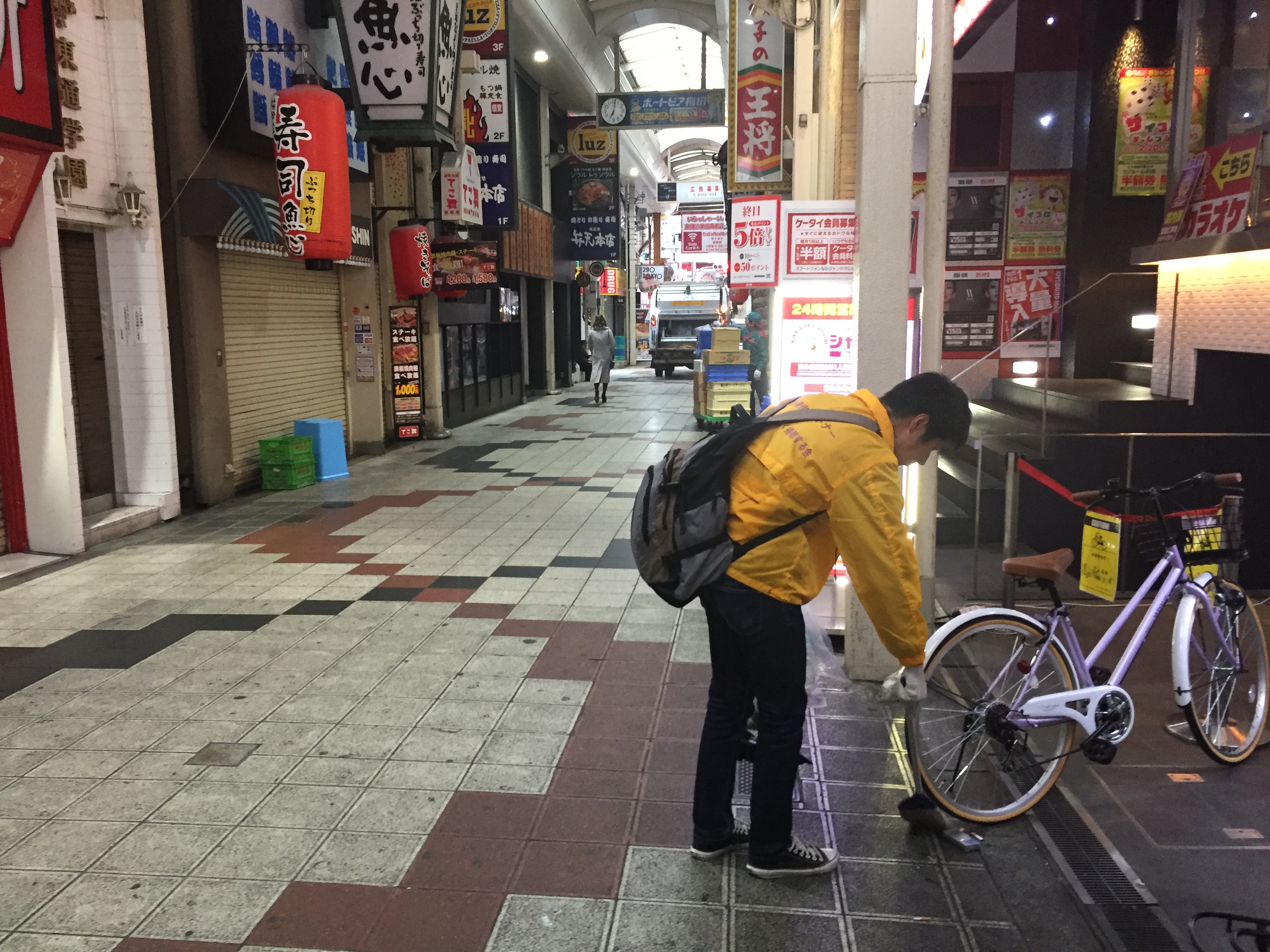 大阪梅田の阪急東通り商店街の清掃活動をしています。