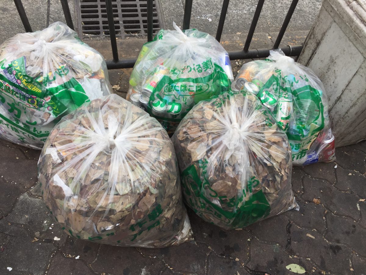 落ち葉が多いです。落ち葉の下に吸い殻やゴミなどがあるので